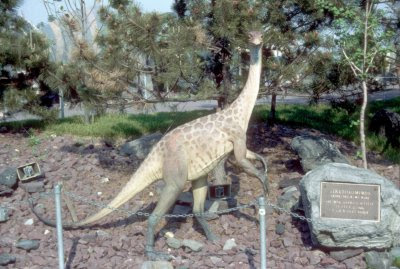 Entre los dinosaurios exhibidos había tres con movimiento, rodeados del paisaje y la flora característica de su período. Se podían observar un Struthiomimus, un Trachodon, un Tyrannosaurus, que aparecía atacando a un Triceratops, un Ankylosaurus, un Corythosaurus, un Brontosaurus cuya cabeza se balanceaba hacia adelante y hacia atrás observando el tráfico en el Grand Central Parkway, un diminuto Ornitholestes, y finalmente, un Stegosaurus.