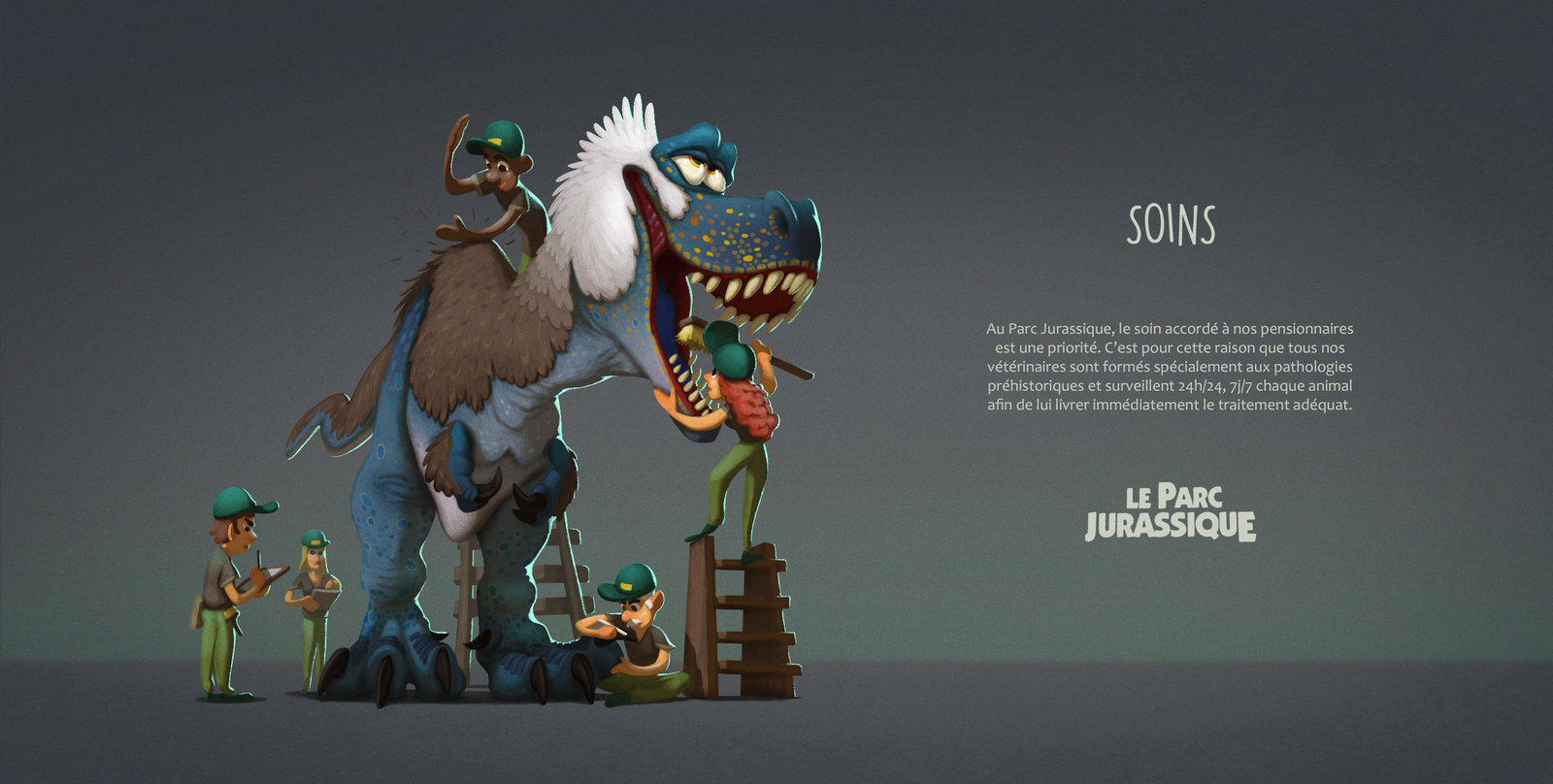 Antonin Jury es un ilustrador de Lyon (Francia) que ha estudiado Arte en la Ecole Emile Cohl y que forma parte de la plataforma de paleoarte Studio 252MYA. Además de realizar reconstrucciones paleontológicas fidedignas, Jury también ha experimentado con la parte más caricaturesca de los dinosaurios, tal y como refleja su proyecto de graduación, en el que recrea un videojuego sobre un parque temático inspirado en la novela de "Jurassic Park" de Michael Crichton. A continuación dejamos una muestra: