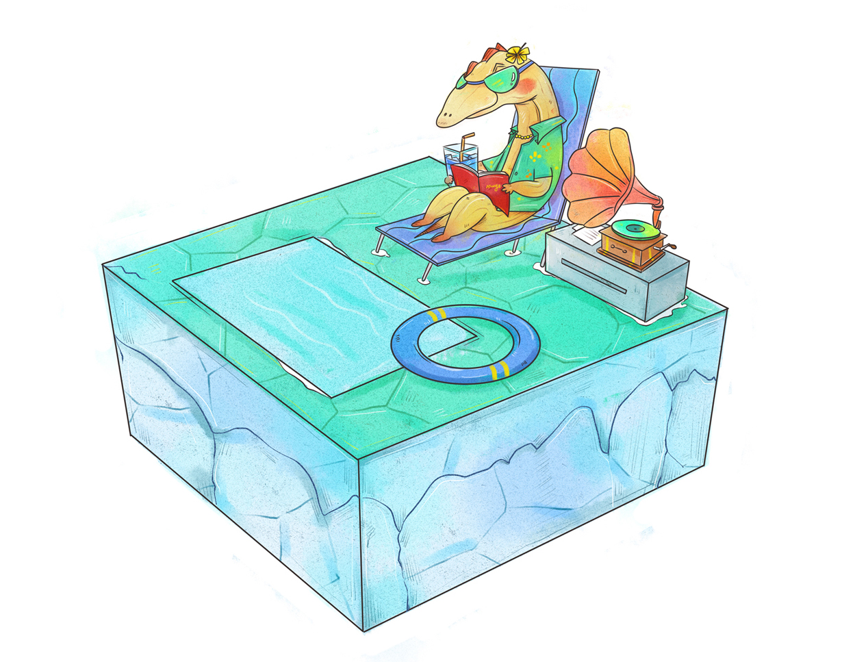 Bajo el sobrenombre de Mango is so sweet se esconde una joven ilustradora de Guangzhou (China) que realiza deliciosas composiciones en las que predominan escenas cotidianas de colores suaves. Entre su obra destaca una serie de dibujos en los que retrata dinosaurios de extrema dulzura y candidez, de la que dejamos una muestra a continuación: