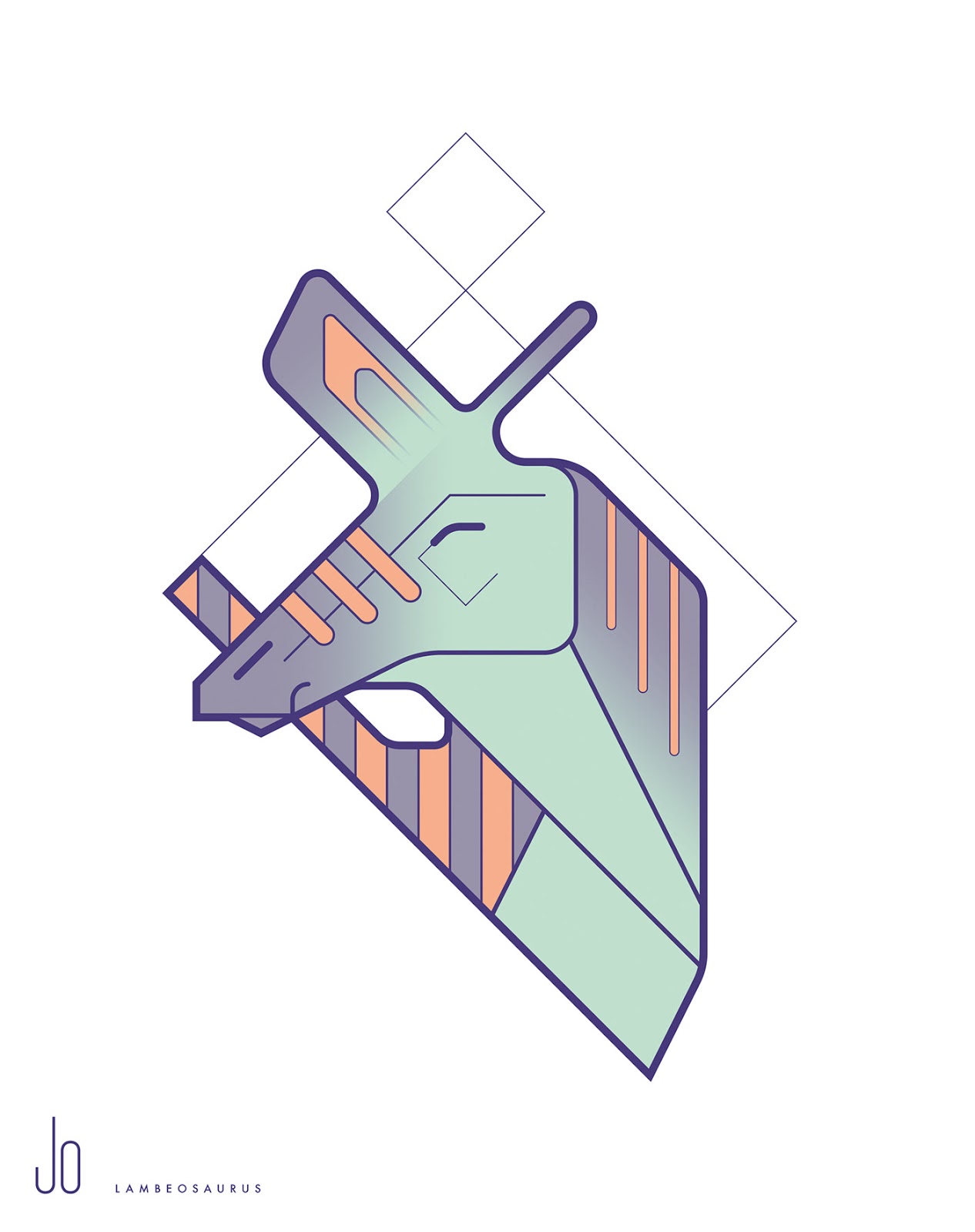 Jo s'illustre es un ilustrador y diseñador gráfico de Le Havre (Francia) caracterizado por un estilo marcadamente geométrico y limpio y que suele representar figuras animales tanto del presente como del pasado. Entre estas últimas destaca una serie de ilustraciones de dinosaurios ornitópodos con líneas muy marcadas y una gama de colores curiosa, que ha hecho que le traigamos por aquí. Ahí lo dejamos: