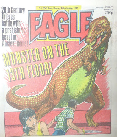 Tras la guerra, el renacimiento del cómic de aventuras inglés comienza el 14 de abril de 1950 con el lanzamiento de una revista con nombre de dinosaurio: Eagle. Ya veo que hay gente por aquí que sabe inglés, pero no me desdigo: ¿acaso las aves no son terópodos pertenecientes al clado de los maniraptores?