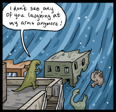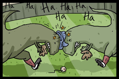 Desde 2012 a 2014, el sueco Henrik Tomenius puso en marcha el webcómic "Poorly Drawn Dinosaurs", una serie de tiras cómicas que prometían dinosaurios mal dibujados y muchas explosiones. En realidad, el dibujo no era tan pobre como decía Tomenius, pero las explosiones si que estaban presentes en muchos de los capítulos, al igual que el humor negro. Como fans de la serie en su momento, nos extrañaba que no hubiésemos hecho ninguna referencia a ésta en el blog. Así que, con permiso del autor, iremos desgranando en próximas entradas lo que fue "Poorly Drawn Dinosaurs"...