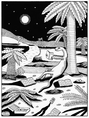 El prota del cómic Abre la puerta, Dino ¿es el mismo que aparece en una ilustración leyendo cómics bajo una palmera? O sólo guardan un parecido razonable.